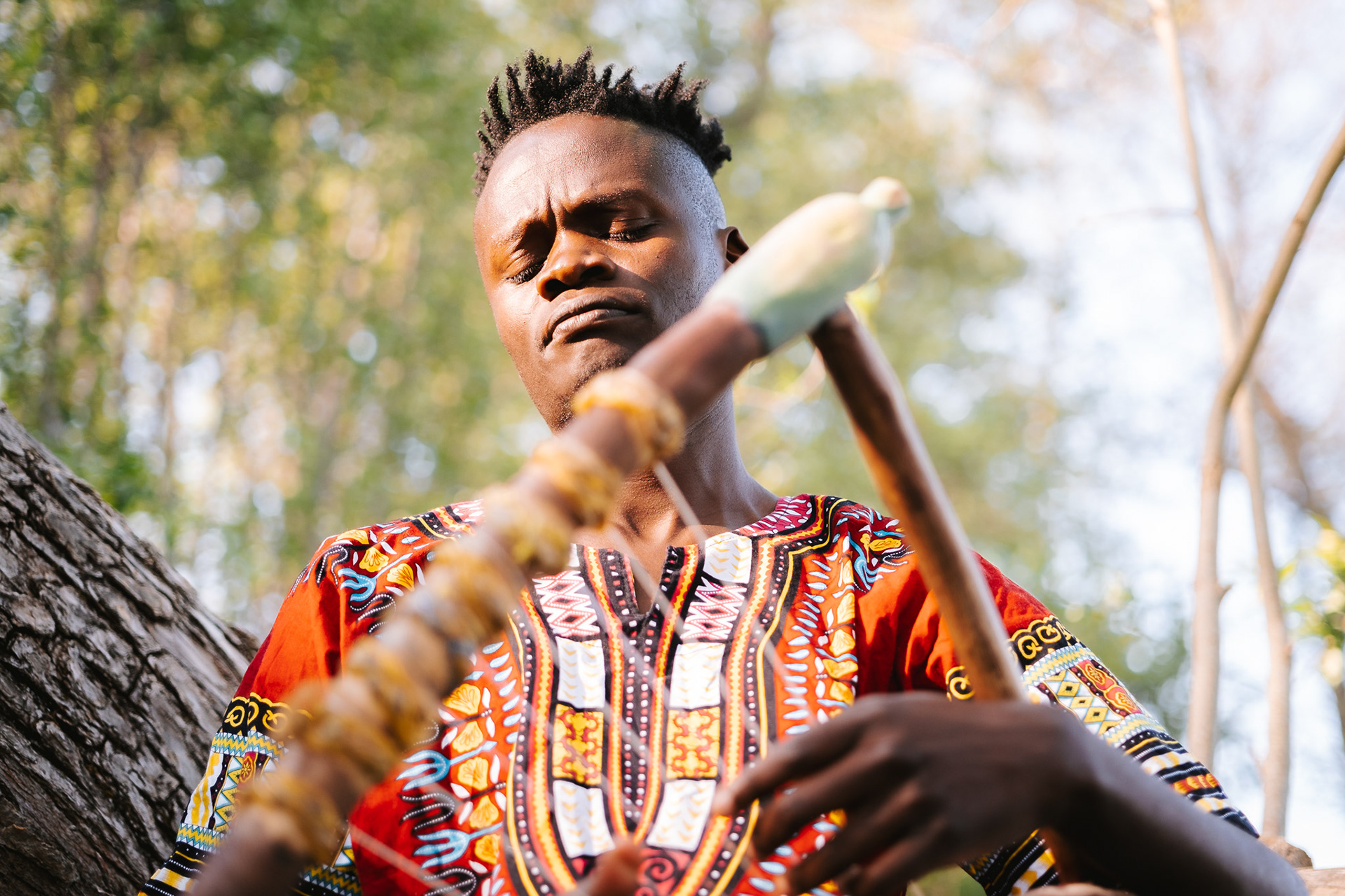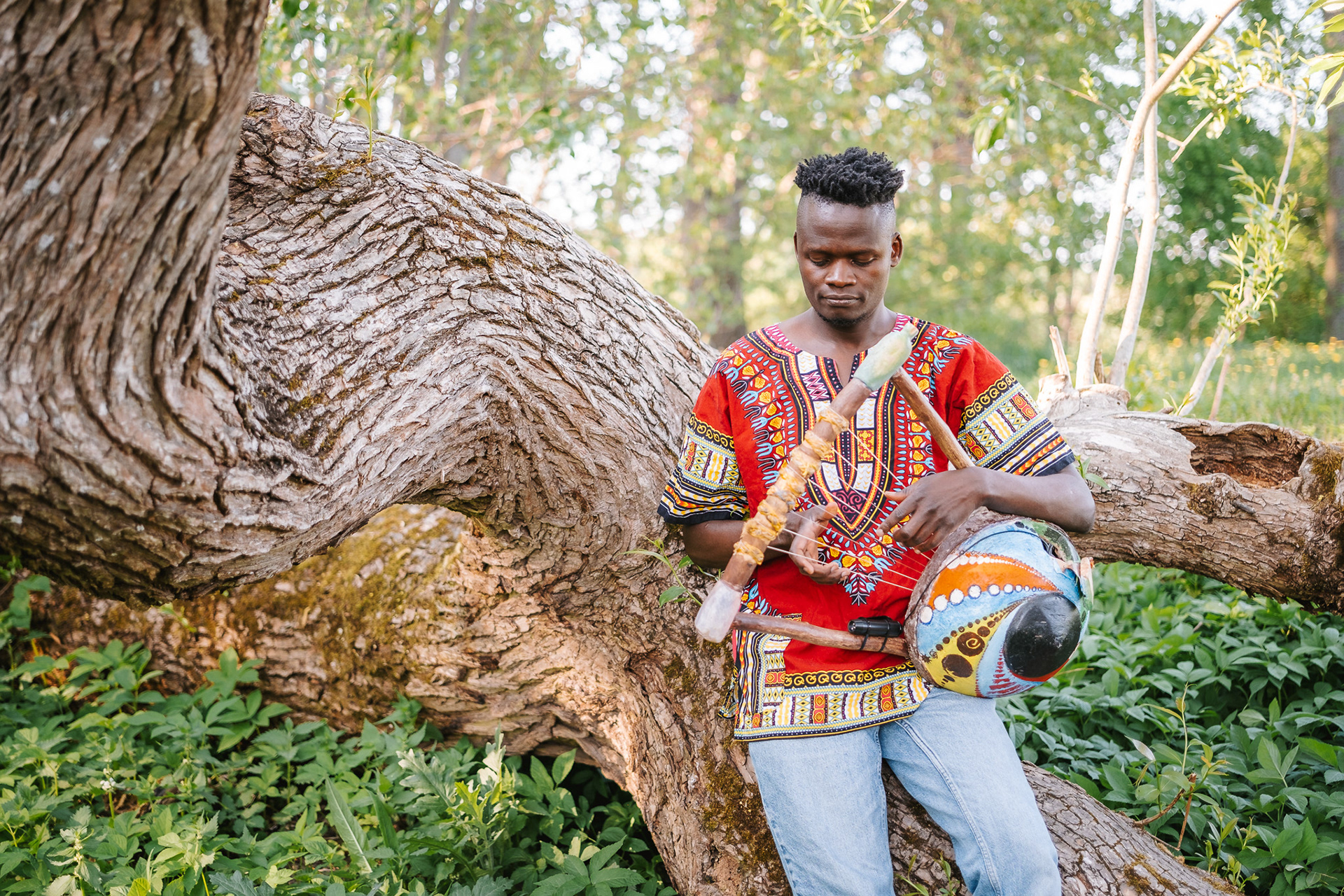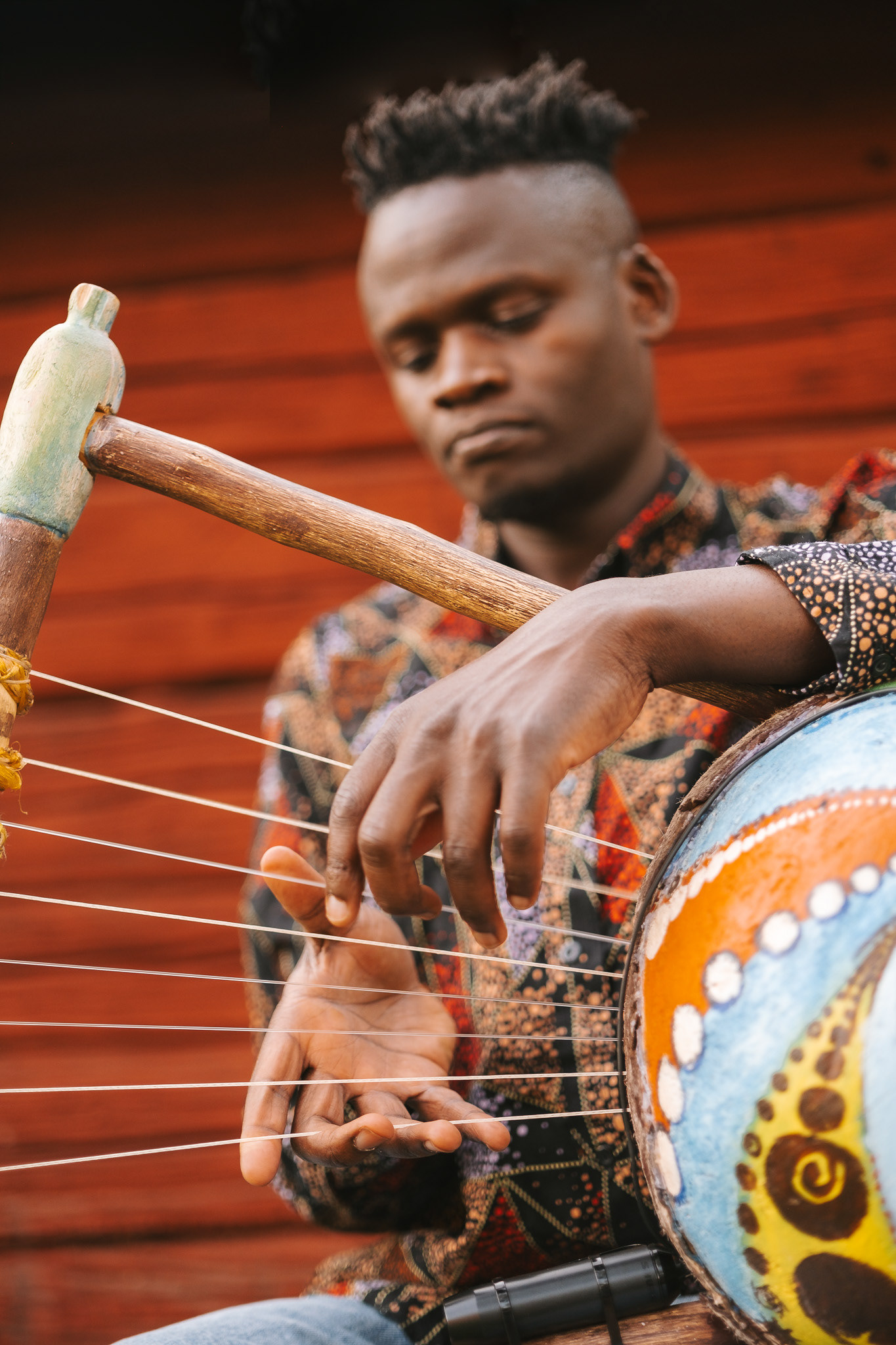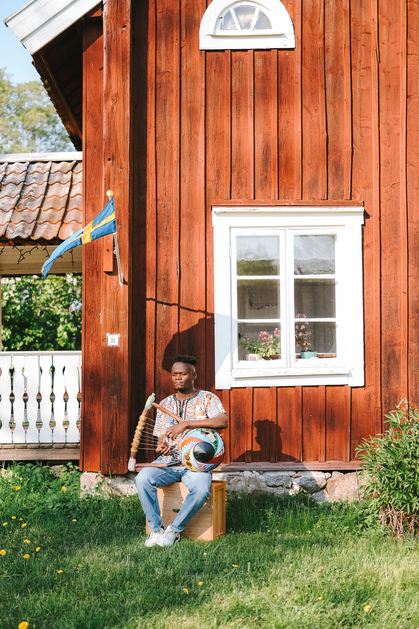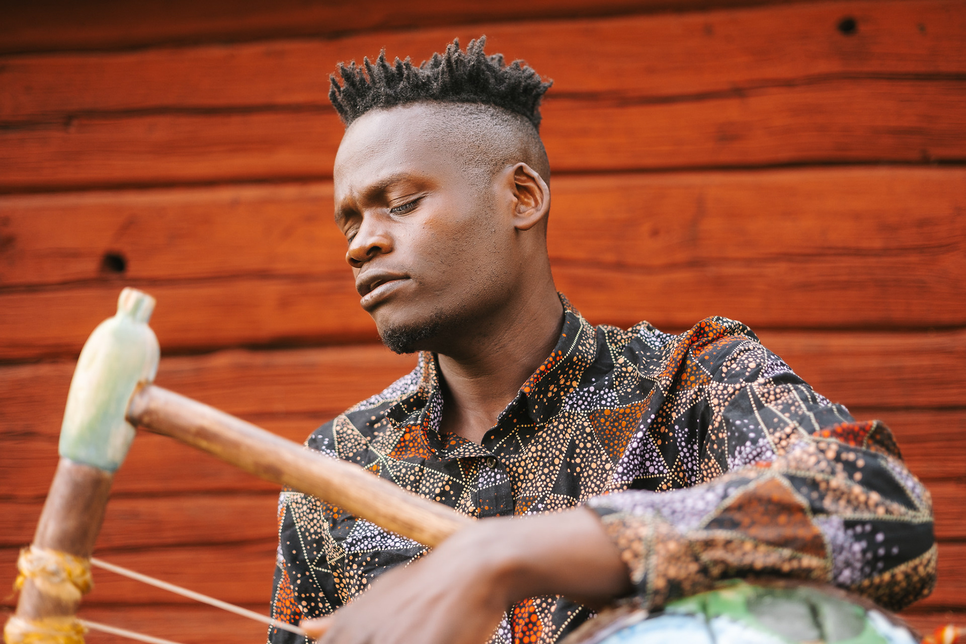 Daniel Onyango is a musician playing the Nyatiti, which is a seven-stringed instrument from Kenya. He asked me to photograph him as a Kenyan artist in a Swedish environment.